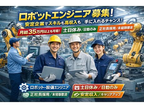 ロボット設備の保全スタッフ/残業少なめ/メリハリ勤務/安定企業/経営基盤安定/経験不問/研修あり